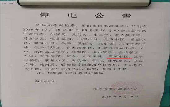 根据图们市供电服务中心停电公告,因市内大部分地段电力设备临时检修,计划在2019年10月10日上午05:00到20:00停电,我中心图们分理处(华源小区)正在停电改造地段,在停电期间暂停对外办理公积金各项业务,给您带来不便,请谅解。